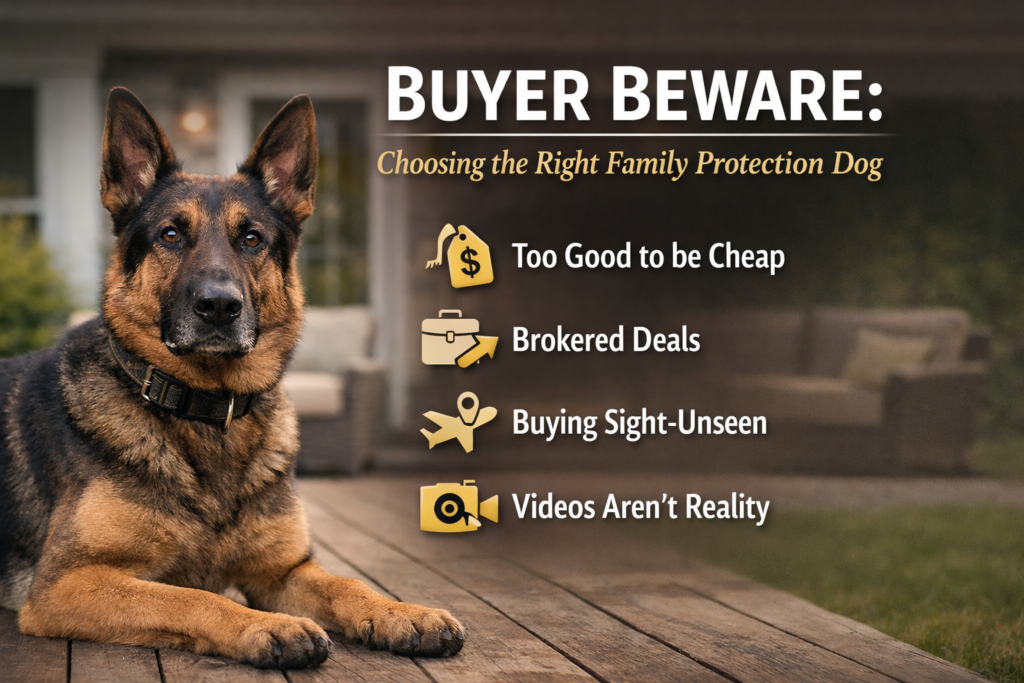 The trained protection dog industry remains largely unregulated, which creates meaningful risk for families. Many reputable providers exist, but there are also operations with polished marketing that do not consistently deliver stable, family-suitable dogs.